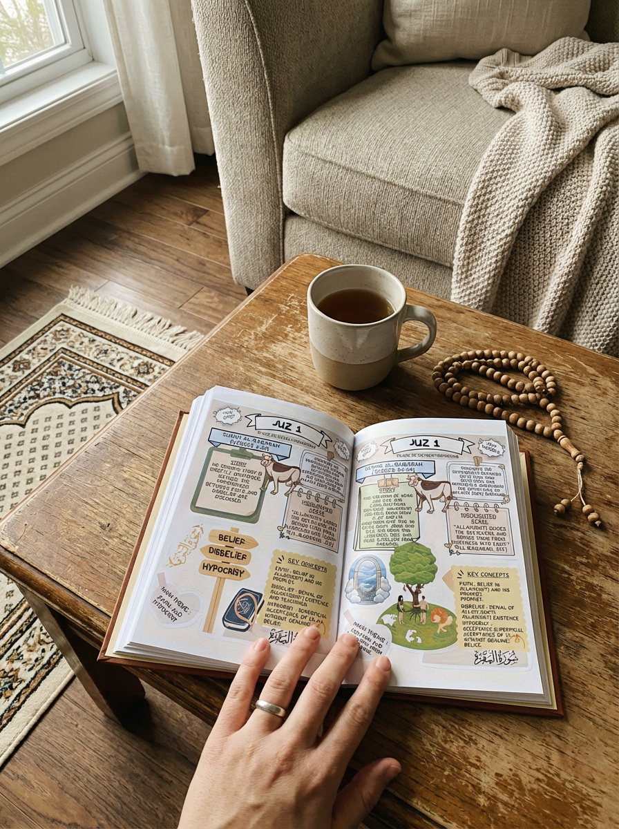 A beautifully designed guide to help you connect with the words of Allah in a clear and meaningful way.